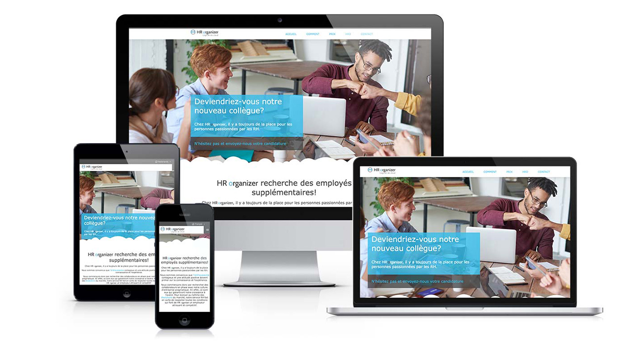 Pour la solution SUR MESURE (réalisé par HR organizer), la structure du site carrière est identique à votre propre site. Le look et le ressenti de votre site d'emploi est identique à votre propre site web.