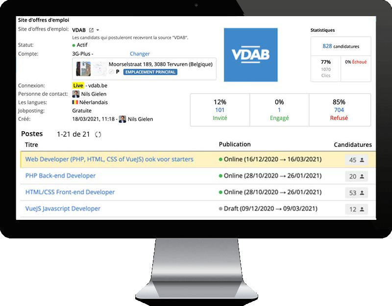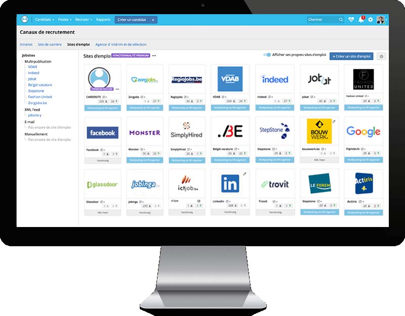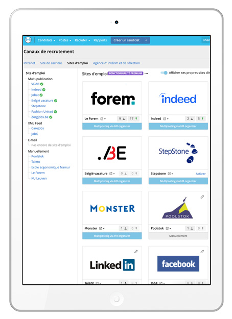 Publiez vos offre d’emploi sur divers sites d'emploi directement à partir du HR organizer.