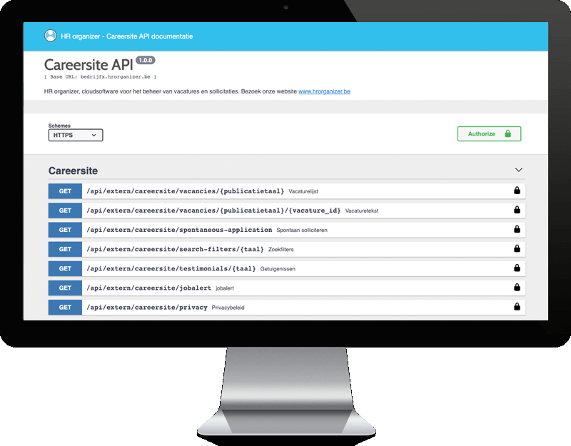 Uw websitebouwer kan via de API's van HR organizer de nodige info ophalen om uw jobpagina's te vullen. De API's sturen vacaturegegevens door naar uw webpagina's vanuit uw HR organizer cloudplatform. Dit kan zowel tekst als foto's zijn dewelke u volledig beheert vanuit HR organizer.