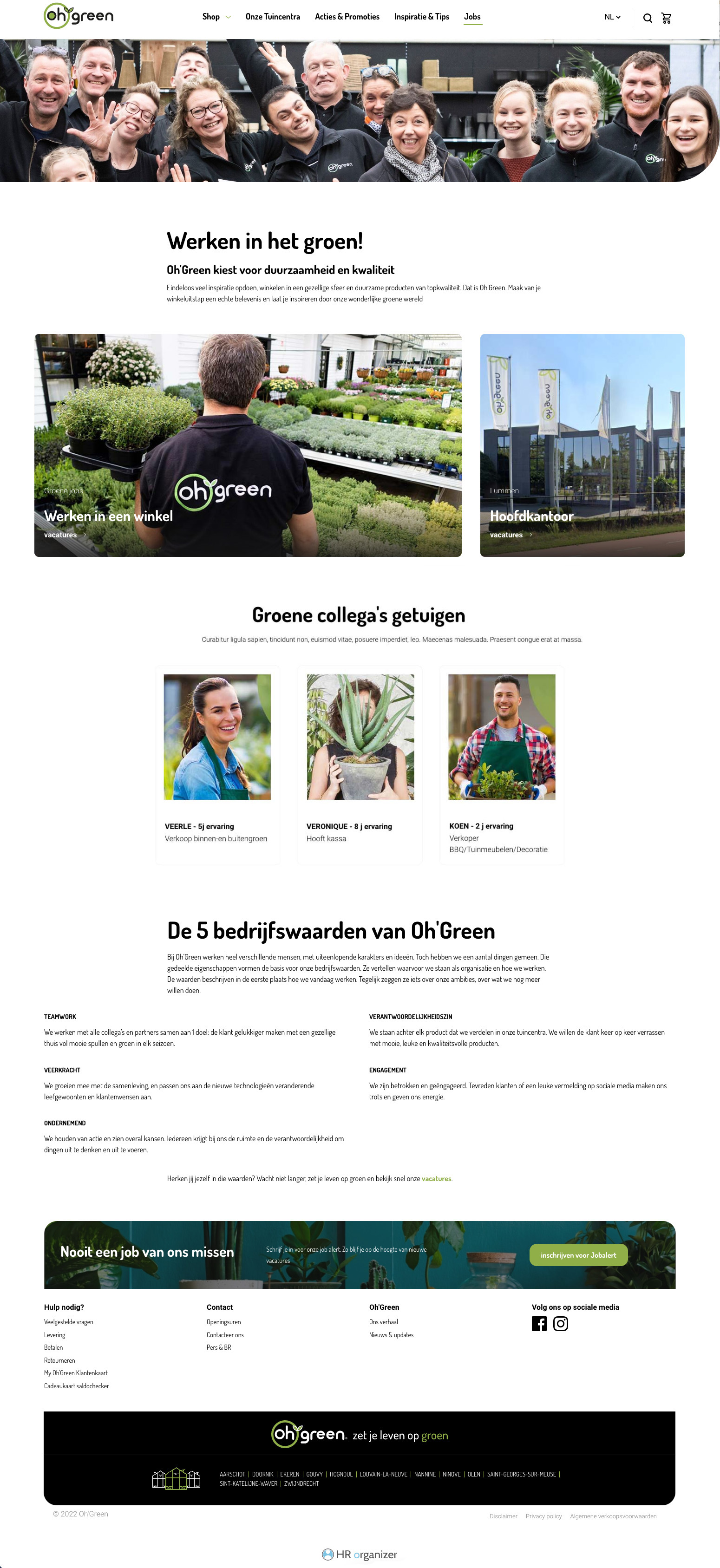 De website van Oh Green werd vernieuwd in 2022, en ook de careersite kreeg een make-over. Oh Green koos voor de custom careersite die volledig door HR organizer werd gebouwd.