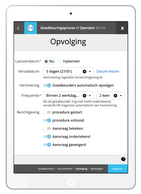Bij elk proces kan u een deadline ingeven zodat collega's weten wanneer ze ten laatste dienen goed te keuren.