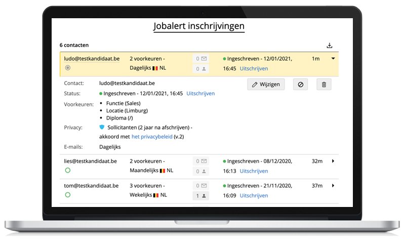 De kandidaat dient, na het versturen van zijn of haar gegevens de jobalert te activeren. Hiermee voorkomen we dat iemand zomaar een e-mailadres ingeeft.