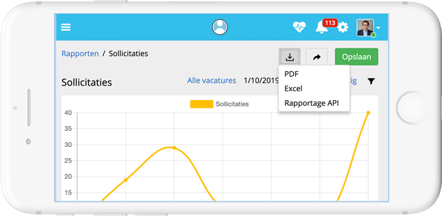 De gegevens van de beschikbare rapporten kunnen naar pdf of excel gehaald worden.