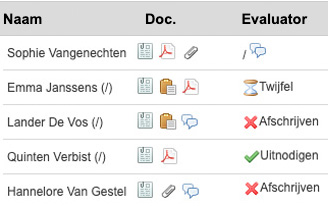 U kan de nodige documenten online opvragen en bekijken (valideren) na ontvangst. De foute documenten kan u opnieuw door de kandidaat laten uploaden.