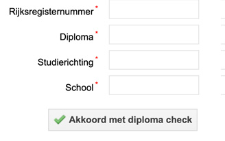 Om een diploma te verifiëren kan u deze feature gebruiken. De kandidaat geeft online toestemming om het diploma te controleren. Ook bruikbaar voor homologatie van buitenlandse diploma's.